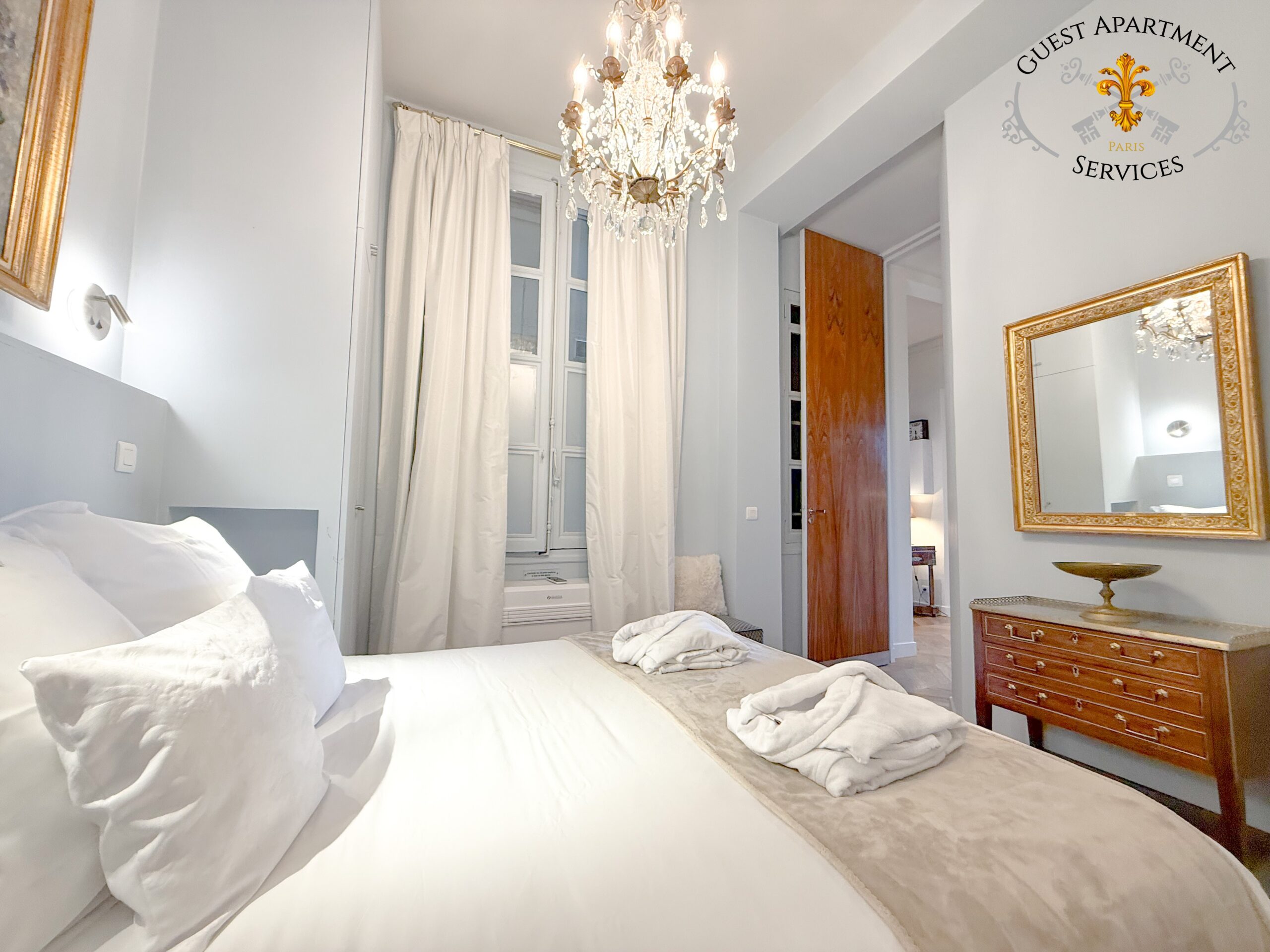 - Bed linen, towels, welcome products designed by Guest Apartment Services Paris upon your arrival.